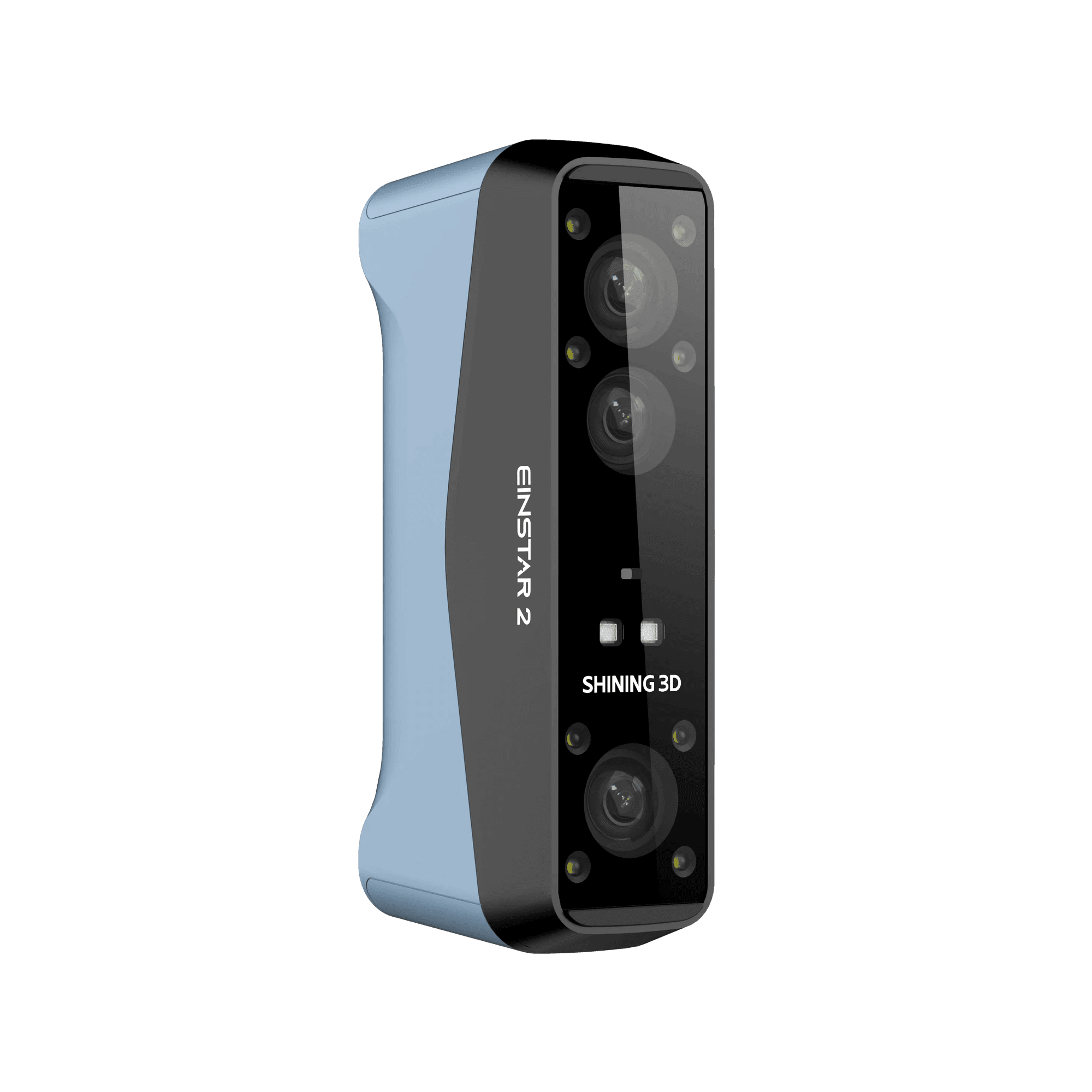 The Shining 3D Einstar 2 is the next generation of the best-selling Einstar scanner — rebuilt from the ground up with a 17-line blue laser, true wireless design, and a swappable battery that keeps you scanning for up to 3 hours. No cables. No spray. No complicated setup. Just high-quality 3D data from objects as small as 5mm up to entire vehicles, indoors or out.